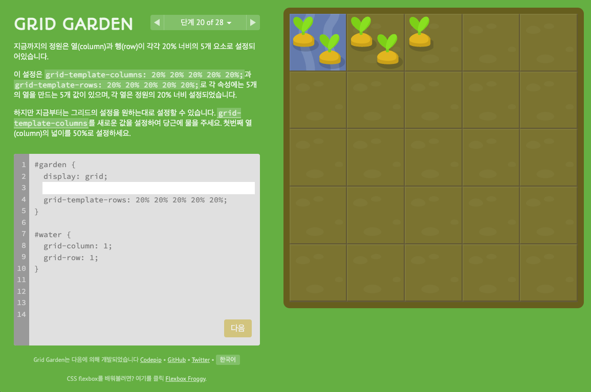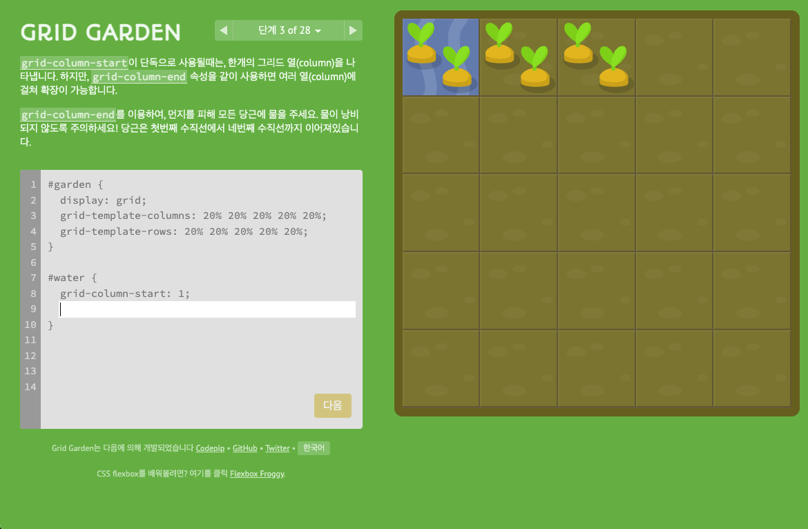 그 중 grid 개념을 즐겁게 학습할 수 있는 Grid Garden 게임을 하면서 정리를 해봤다.