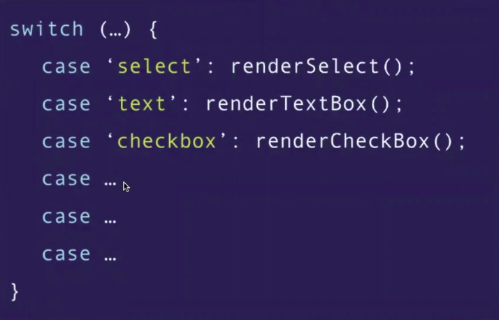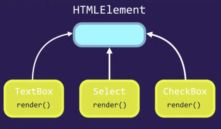 ex) HTML 태그에서 TextBox, Select, CheckBox가 모두 각각 render()라는 기능이 필요하다고 할때 TextBox에서 render(), Select에서 render(), CheckBox에서 render()를 정해주는게 아니라 HTMLElement에서 render()를 정해준 다음에 각각 부모를 상속받고 render()를 쓰게 한다.