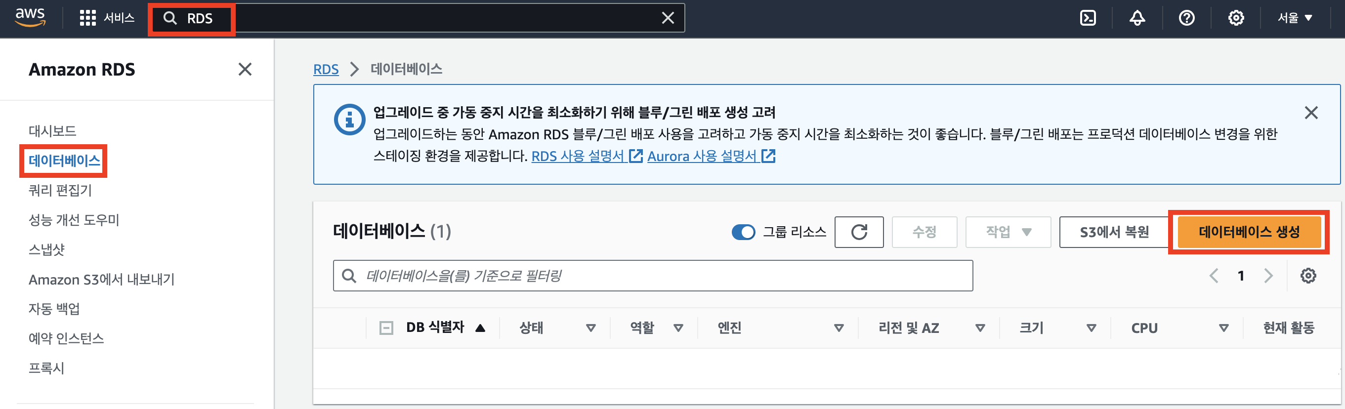 오늘은 RDS를 생성하고 EC2서버와 RDS를 연결하는 내용을 기록해보고자 한다.