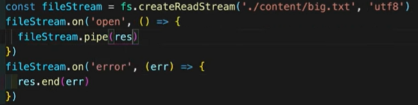 fs.createReadStream 이라는 비동기 함수와 pipe함수 사용!