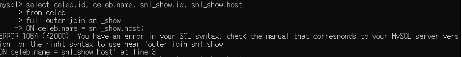 =>sql에 FULL OUTER JOIN의 명령어가 없기 때문에 에러가 난다.