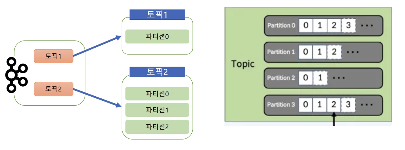 - 토픽을 구성하는 데이터 저장소로서 수평확장이 가능한 형태