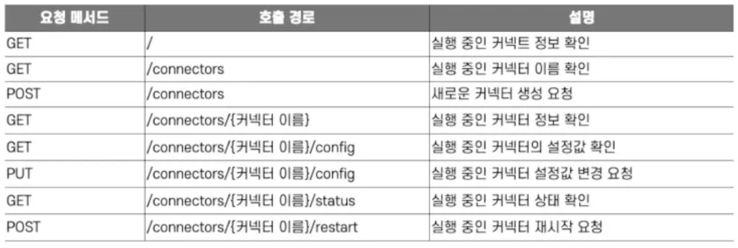 - 커넥트는 8083 포트로 호출할 수 있으며, HTTP 메서드 기반 API를 제공한다.