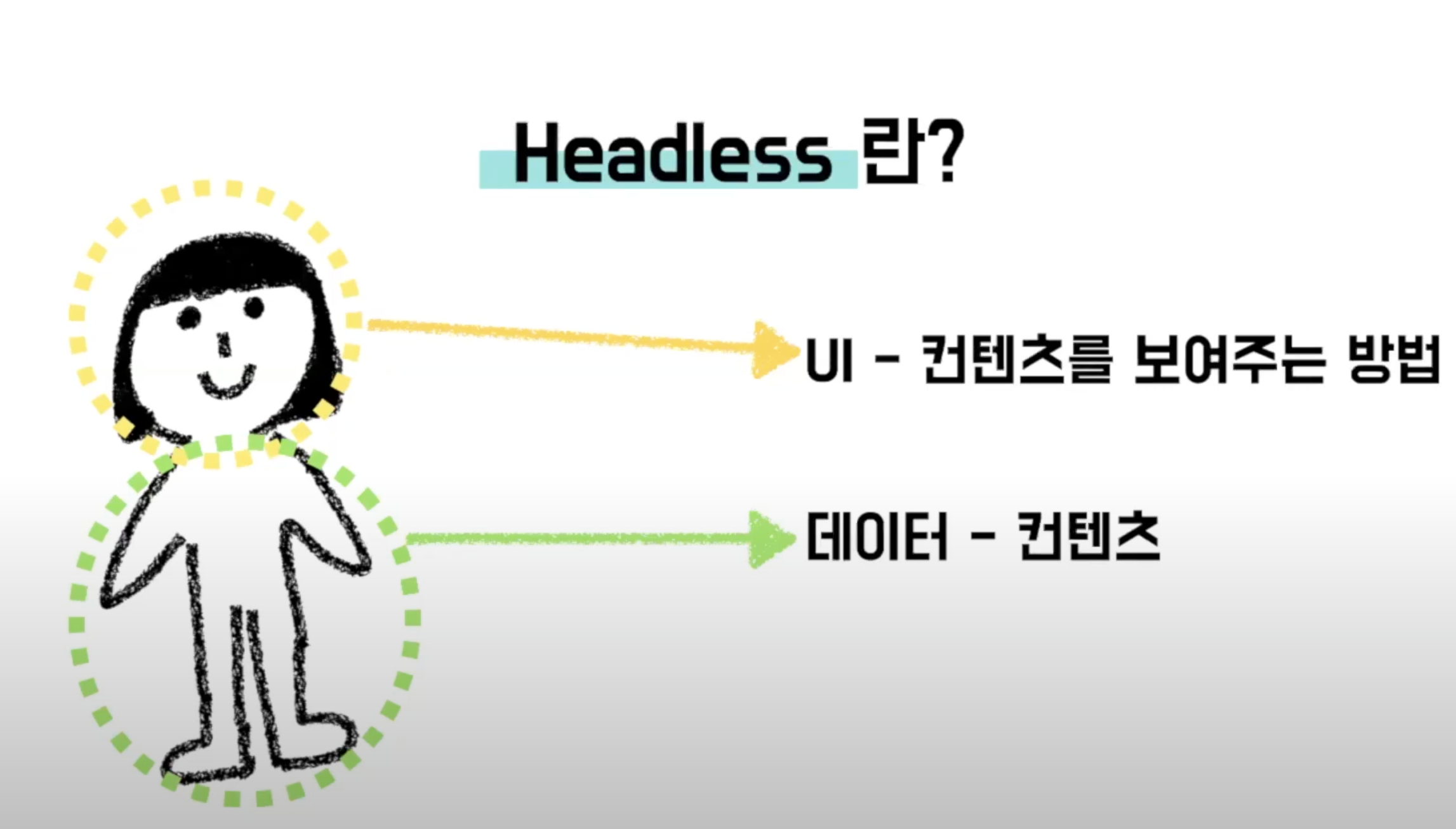 head는 컨텐츠를 보여주는 방법인 UI, 몸통은 컨텐츠 자체인 데이터를 말한다. 따라서 headless란 스타일링을 담당하게 되는 부분을 과감하게 제외하고 상태와 관련된 부분만을 다루는 것을 뜻한다.