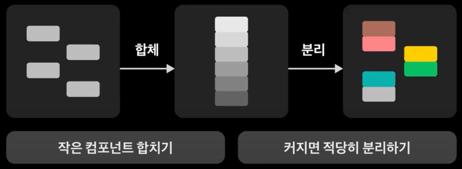 생각없이 개발하면 기준없이 컴포넌트를 만들수 있다. => 고민이 필요함