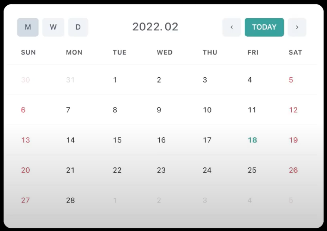 const { headers, body, view } = useCalendar(); // useCalendar라는 hooks로 달력에 대한 데이터를 추상화해서 표현