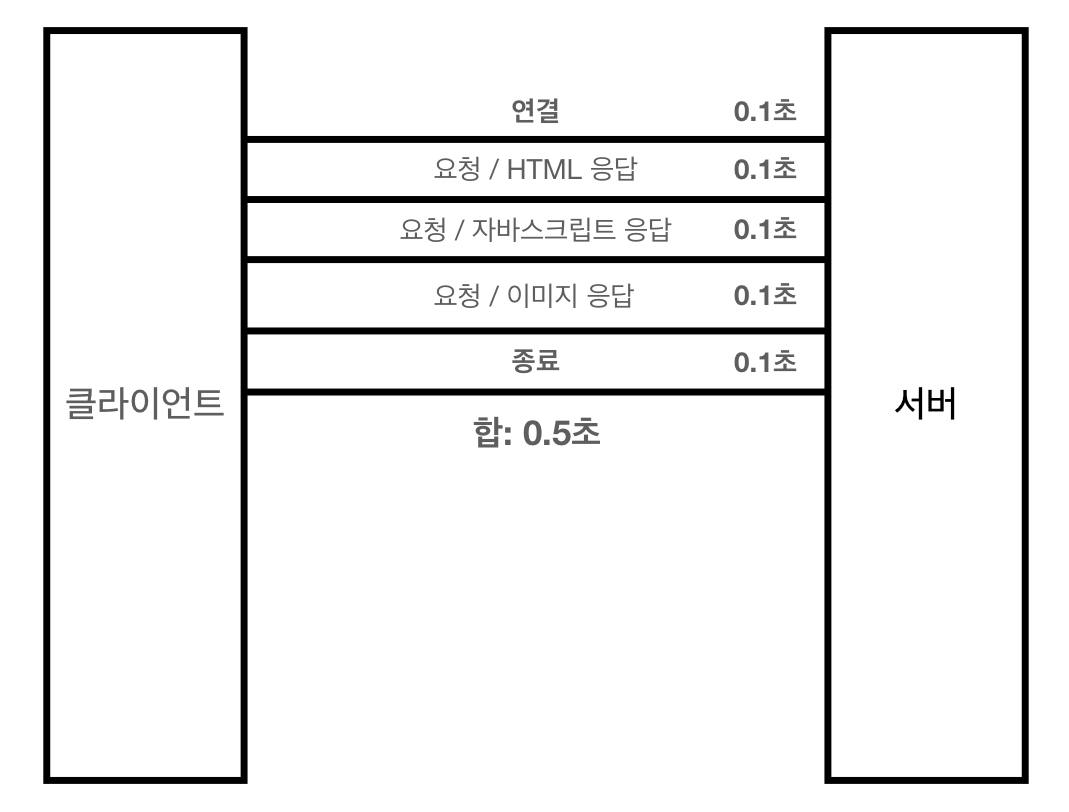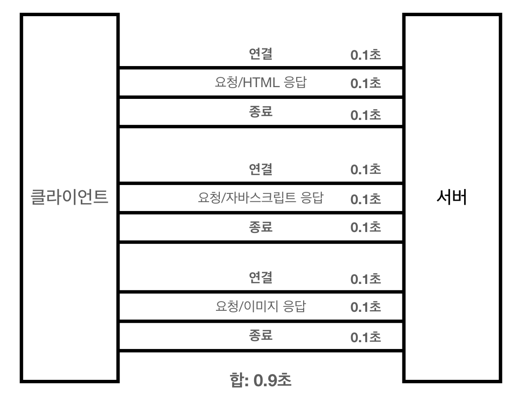 TCP/IP가 연결을 새로 맺을 때마다 3 way handshake 시간이 추가된다. 웹 브라우저로 사이트를 요청하면 HTML과 자바스크립트, CSS, 이미지 등 수 많은 자원이 함께 다운로드 되어야 한다. 이러한 자원을 받을 때마다 연결하고 끊기를 반복하는 것은 비효율적이다.