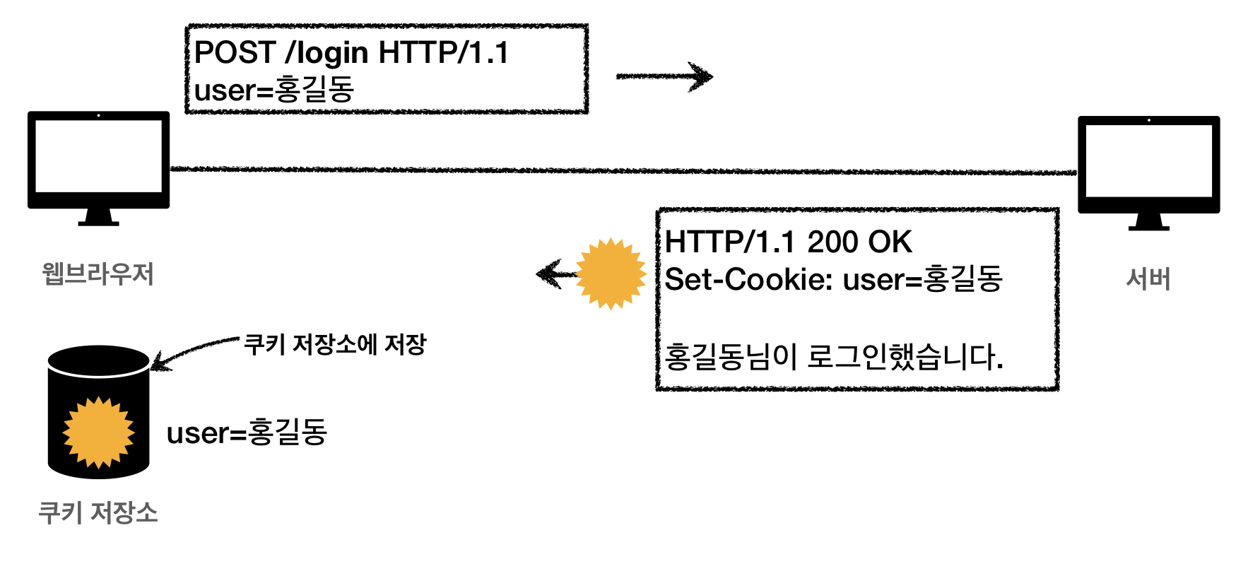 Set-Cookie 헤더로 서버에서 클라이언트로 쿠키를 전달(응답)한다.
