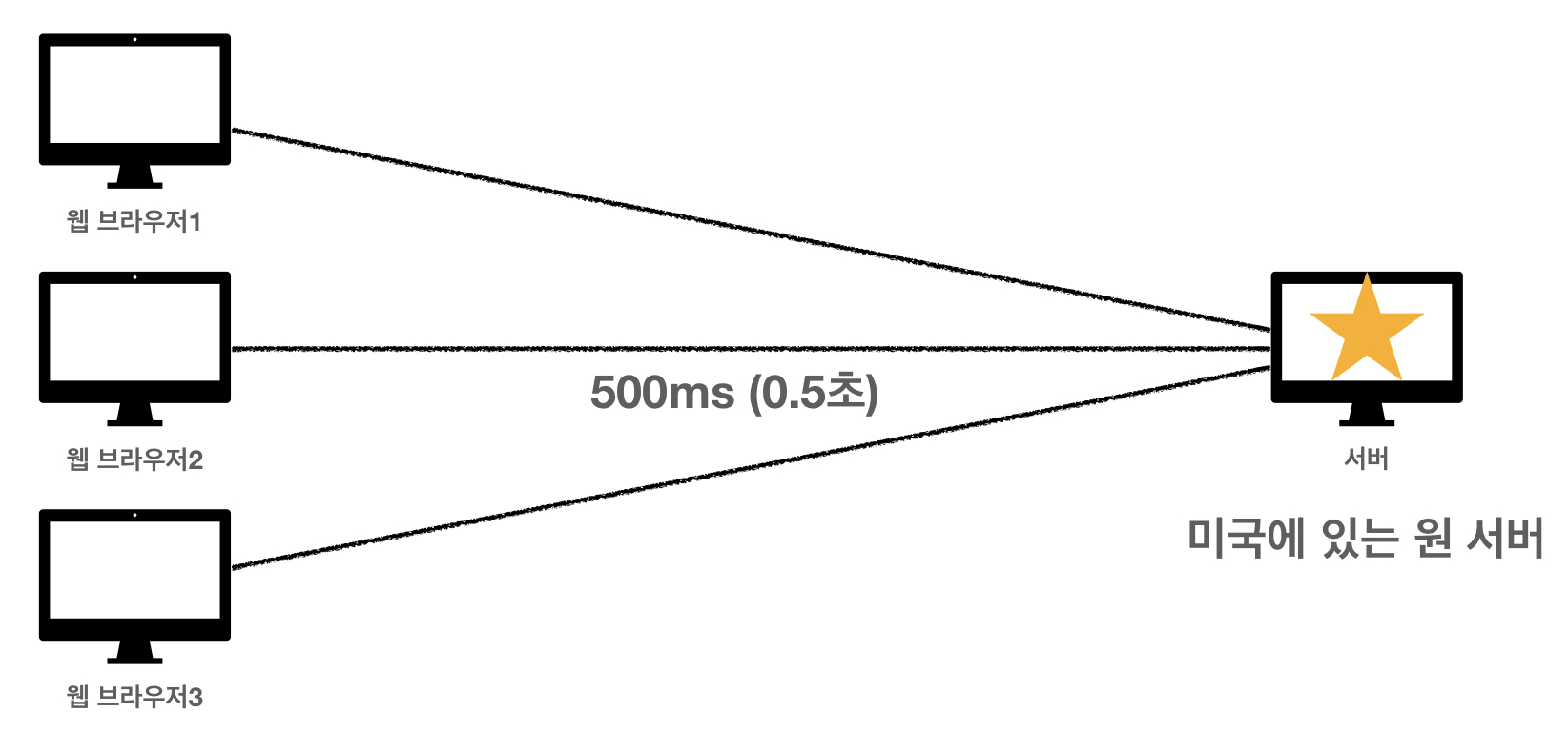 클라이언트가 원(origin) 서버를 접근하면 요청할 때마다 시간이 오래 걸린다.