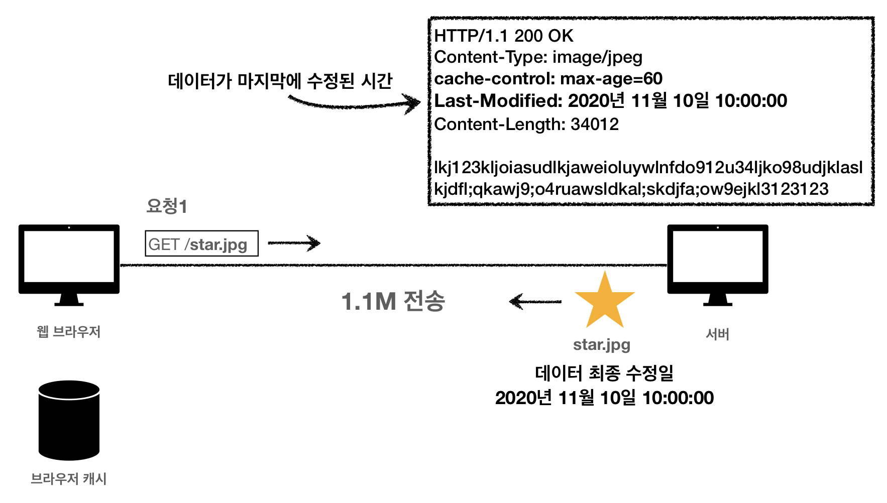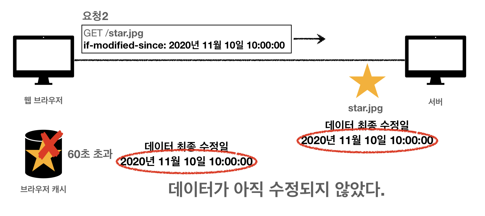 만약 캐시 시간이 초과한다면 캐시가 갖고 있는 데이터 최종 수정일과 서버가 갖고 있는 데이터 최종 수정일을 비교한다.