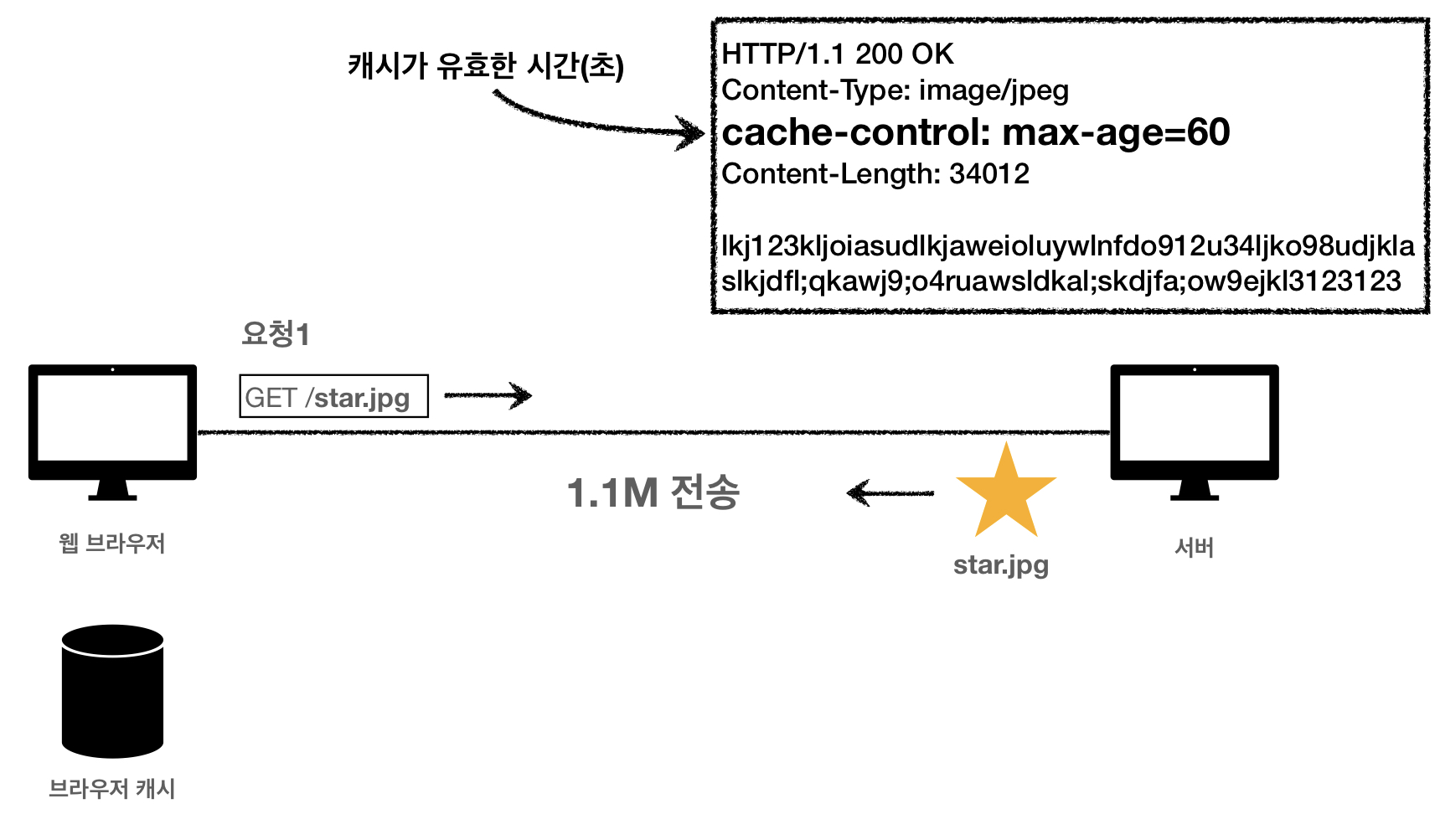 최초로 소스를 요청하면 캐시가 유효한 시간(초)를 나타내는 cache-control 헤더를 포함한 HTTP 헤더와 바디를 전송한다.