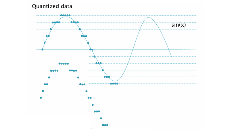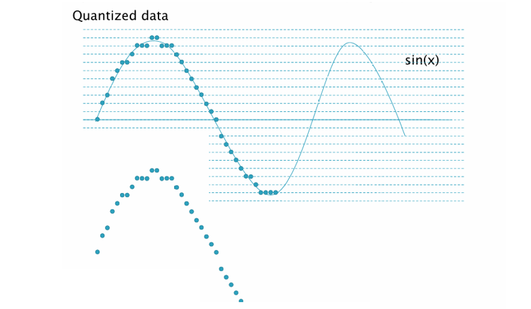 위 그림에서 곡선 뒤에 촘촘한 가로선이 존재한다. 이 선들이 바로 양자화 단계(Quantization Levels)이다.