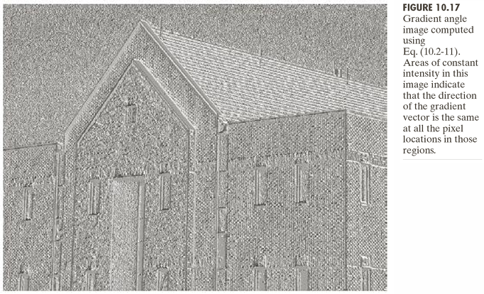 밝기가 일정한 영역은 같은 각도 값을 갖는 픽셀들이 모여 있는 영역을 의미한다. 즉, 그 부분에서는 경계의 방향이 동일하다는 의미이다.