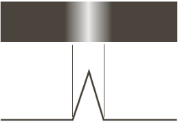 밝기가 특정 위치에서 최대(최소)를 이루고 양쪽으로 완만하게 감소한다. 얇은 선이나 가느다란 구조에서 나타나는 패턴이다.