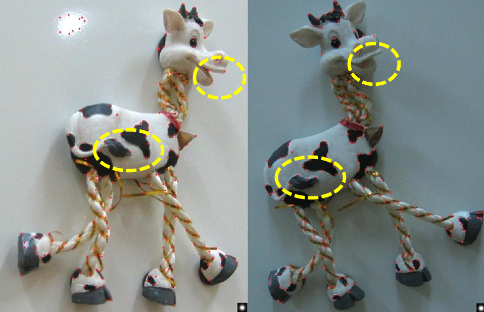 Harris 코너 검출기는 영상에서 코너를 잘 찾아내는 강력한 기법이지만, 그 특성을 살펴보면 다음과 같은 불변성(Invariance) 측면에서 장단점이 존재한다.
