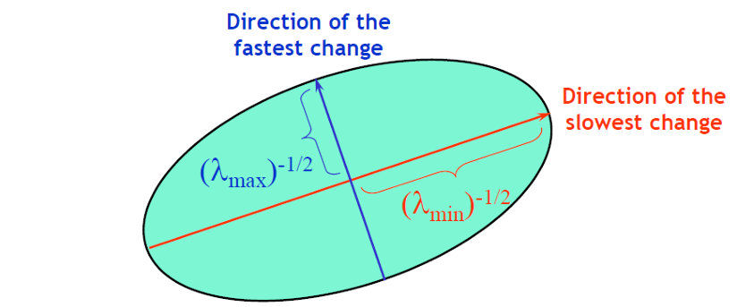 즉, 의 크기는 가장 빠른 변화 방향(Gradient가 큰 방향, 의 크기는 가장 느린 변화 방향을 나타낸다.