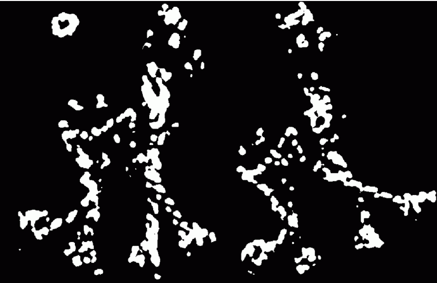 아래 이미지는 일정 기준(threshold) 이상의 값을 가진 픽셀만 잠정적인 코너 후보로 남겨둔다.
