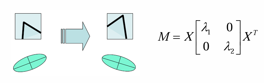 여기서 는 고유값, 은 회전(고유벡터 방향)을 나타낸다.