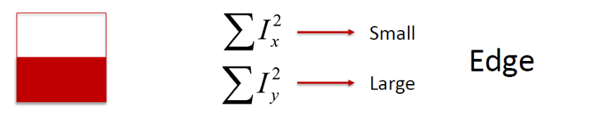 가운데 그림처럼, 에지 방향으로 이동하면 변화가 거의 없지만, 에지 방향과 수직으로 이동하면 강한 강도 변화가 발생한다.