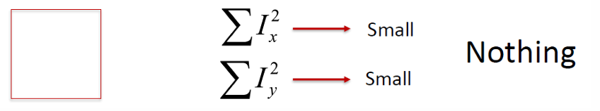 과 가 모두 작은 경우, 영상의 강도 변화가 거의 없다. 즉, 모든 방향에서 밝기가 일정하여 특징점이 될 만한 요소가 없다. 예를 들어, 흰 종이 위 아무 무늬 없는 부분이 이에 해당한다.