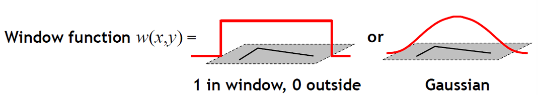 : 윈도우 함수(예: 사각형 윈도우, Gaussian 가중치)