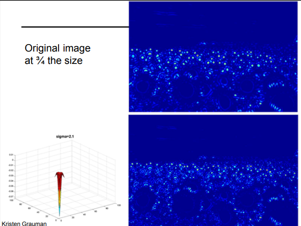 위 이미지의 그래프를 보면, Laplacian과 DoG의 응답 곡선이 거의 겹쳐있음을 알 수 있다. 즉, DoG로 대체가 가능하다는 뜻이다.