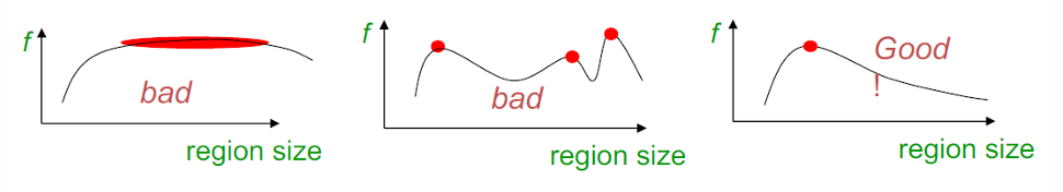 스케일 불변 검출을 위해서는, 스케일을 변화시키면서 함수 의 값을 관찰할 때, 하나의 뚜렷하고 안정적인 피크(peak)가 존재해야 한다.