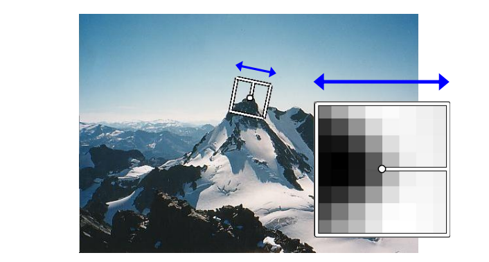 Feature Descriptor의 역할은 각 특징점을 마치 지문처럼 고유한 벡터로 요약하는 것이다. 서로 다른 이미지에서 동일한 물체의 동일한 특징점이라면, 두 Descriptor는 유사한 값을 가져야 한다. 이를 통해 확대축소되거나 회전된 이미지에서도 안정적으로 같은 물체의 같은 위치를 대응시킬 수 있다.