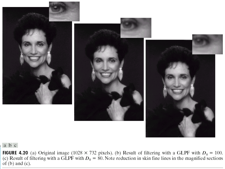 정리하면, 저역 통과 필터(Lowpass Filters)는 노이즈 제거 및 부드럽게 하기(smoothing), 고주파 성분 억제를 통한 디테일 감소(블러링), 스캔라인 등 주기적 패턴 제거, 글자, 문서, 위성, 인물 이미지 등 다양한 응용이 가능하다.