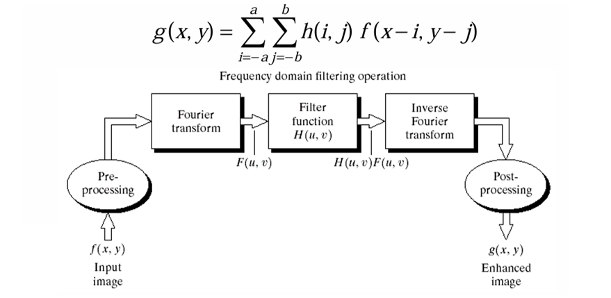 주파수 영역 필터링은 이미지를 푸리에 변환 후, 원하는 주파수 성분만 통과시키고 나머지는 제거하거나 약화시키는 방식으로 처리하는 기법이다. 이는 공간 도메인에서의 컨볼루션(convolution) 연산과 동일한 역할을 하지만, 계산적으로 더 효율적인 경우가 많다.
