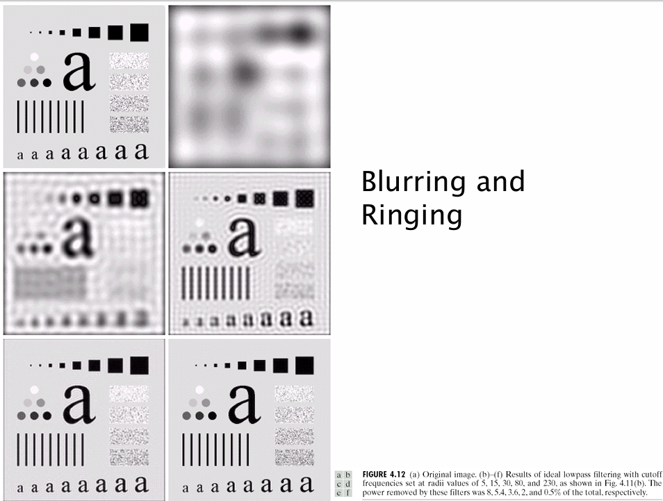 또한 필터의 종류(Ideal, Butterworth, Gaussian)에 따라 성능과 부작용(예: Ringing)의 정도가 다르므로, 적절한 필터 선택이 중요하다.