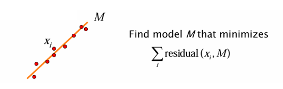 예를 들어 여러 점들이 있을 때, 이 점들을 가장 잘 설명하는 직선 모델 을 찾는 방식이였다. 이 과정은 잔차(residual), 즉 모델과 점들 간의 차이를 최소화하는 방향으로 이루어진다.