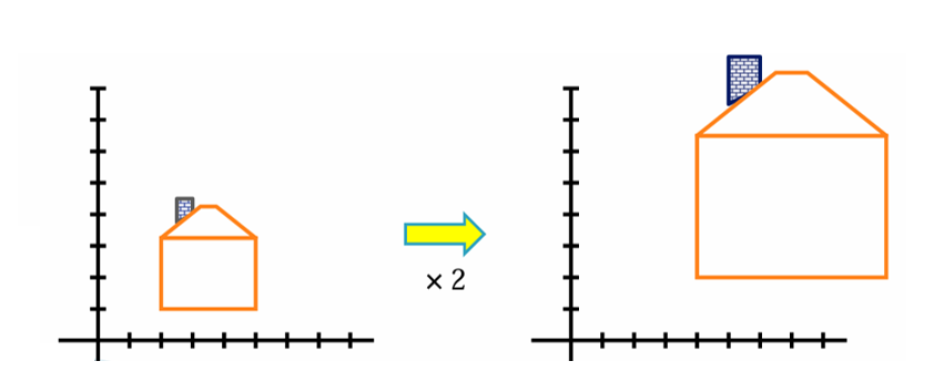 각 좌표에 스케일 값을 곱하여 객체를 확대 또는 축소한다.
