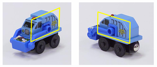 또한 아핀 변환은 뷰포인트 변화(viewpoint change)를 근사(approximate)할 수 있다는 점에서 실용적이다. 물론 아핀 변환은 본래 3차원 원근 투영을 완전히 표현할 수 있는 모델은 아니다. 하지만 물체가 대체로 평면적 구조(planer object)를 가지고 있고, 카메라가 정사영(orthographic)에 가까운 조건이라면, 실제로 발생하는 뷰포인트 변화를 상당히 잘 설명할 수 있다. 예를 들어, 서로 다른 시점에서 촬영된 장난감 트럭의 창문 부분을 생각해보면, 비록 3차원적인 위치 변화가 존재하더라도 창문이라는 평면 영역은 아핀 변환만으로도 충분히 일관되게 맞출 수 있다.