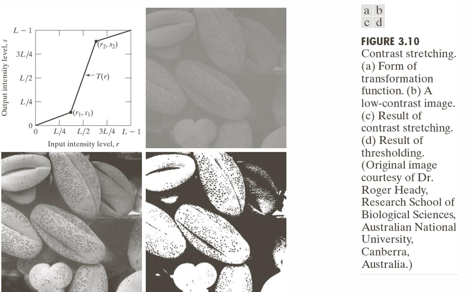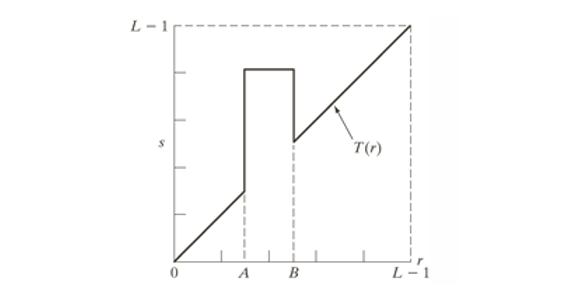 Contrast Stretching은 구간별 선형 변환(Piecewise-Linear Transformation) 방식으로 구현된다.