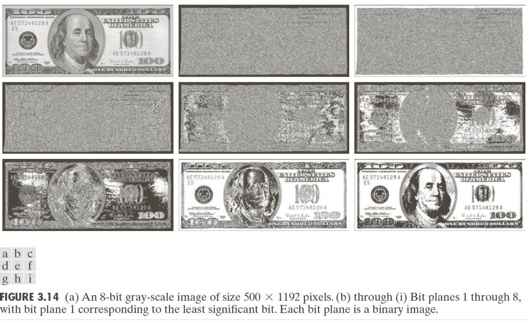 이미지를 비트 단위로 분해하면 어떤 비트가 이미지 정보에 중요한 역할을 하는지 분석이 가능하기 때문에, Bit-Plane Slicing을 사용한다.