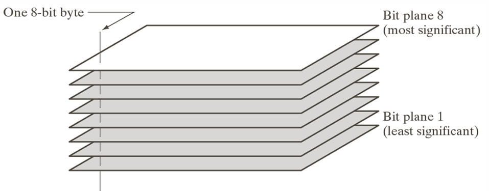 Bit-plne slicing은 디지털 이미지의 각 픽셀을 이진수 형태로 분해하여 각 비트를 별도의 평면(plane)으로 표현하는 기법이다.