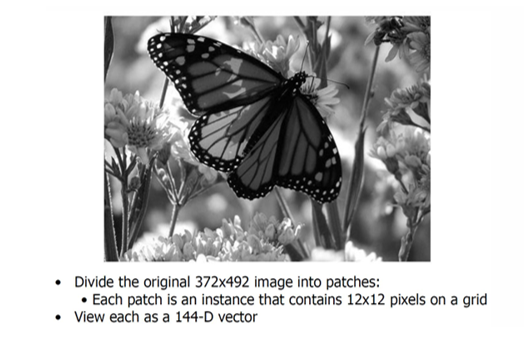 예를 들어, 픽셀 블록 하나의 패치를 144차원 벡터(144D)로 표현한다.