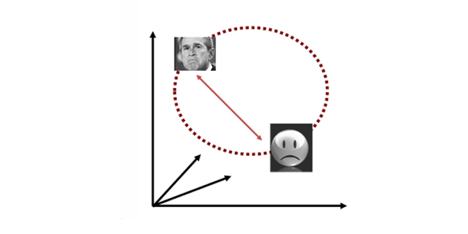 사람 얼굴, 동물, 사물, 풍경 등 모든 것이 이 고차원 공간에 점으로 표현된다.