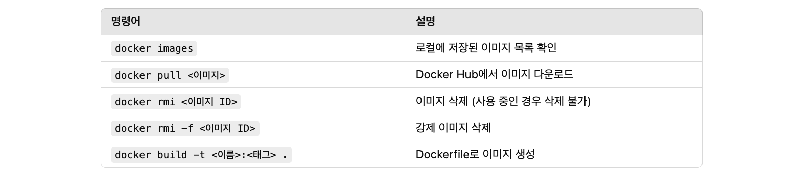 - Images : 실행 가능한 소프트웨어 패키지(예: python, Redis, Alpine 등)