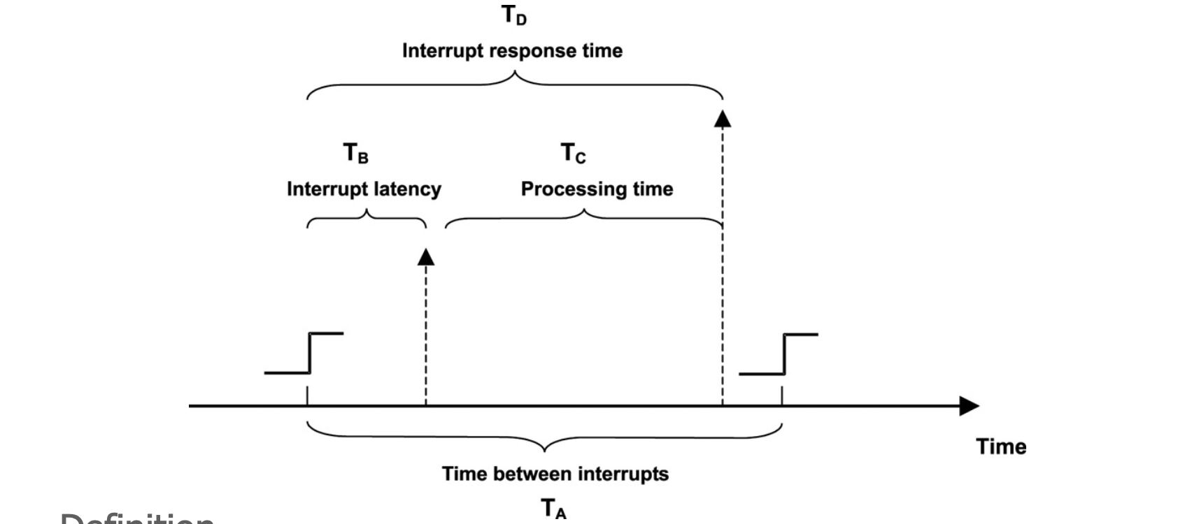 이 모든 시간을 합한 것이 TD (Interrupt Response Time) = TB + TC 이다. 즉, 인터럽트 발생부터 완전히 처리되기까지의 총 소요 시간이다.