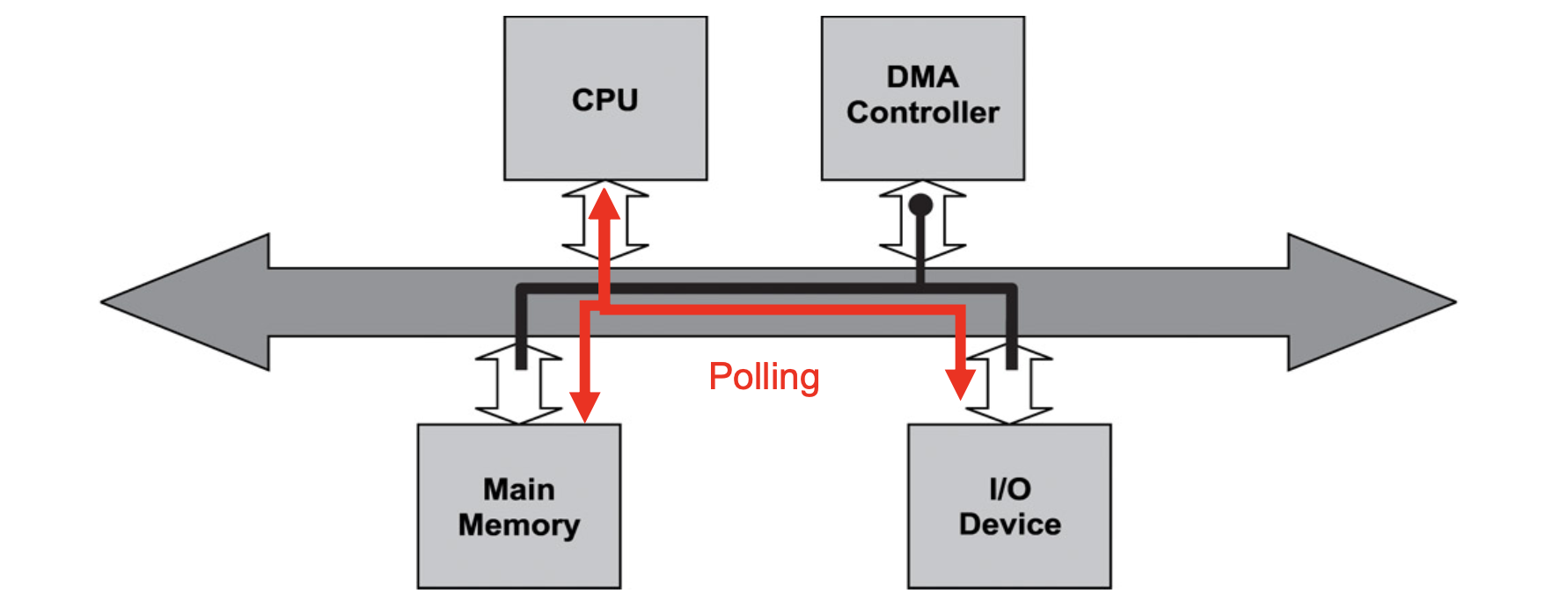 이 방식의 큰 문제는 CPU가 계속해서 상태를 감시해야 하므로, 다른 중요한 작업을 처리하지 못하고 시간만 낭비하게 된다는 점이다. 시스템 리소스를 비효율적으로 사용하는 대표적인 예다.