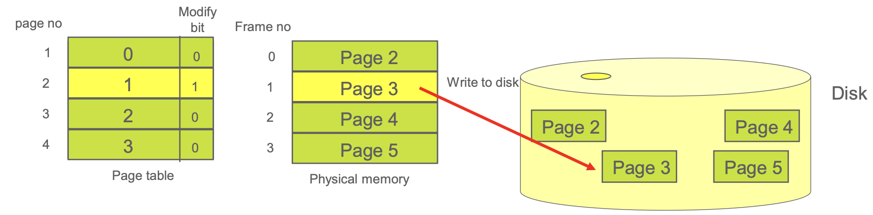 페이지 교체 과정에서 또 하나의 중요한 요소는 수정 비트(Modify 또는 Dirty bit)이다. 이 비트는 해당 페이지가 메모리에서 변경되었는지 여부를 나타낸다.