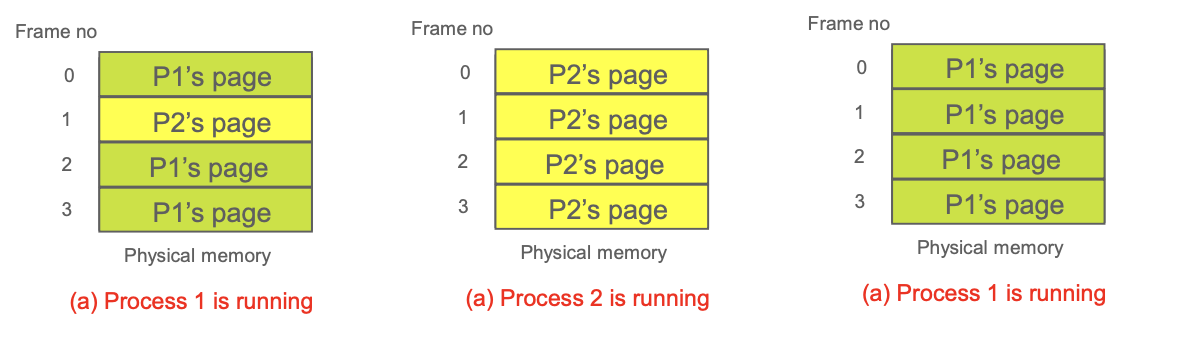 - 각 프로세스는 자신에게 할당된 프레임 안에서만 페이지 교체를 수행한다.