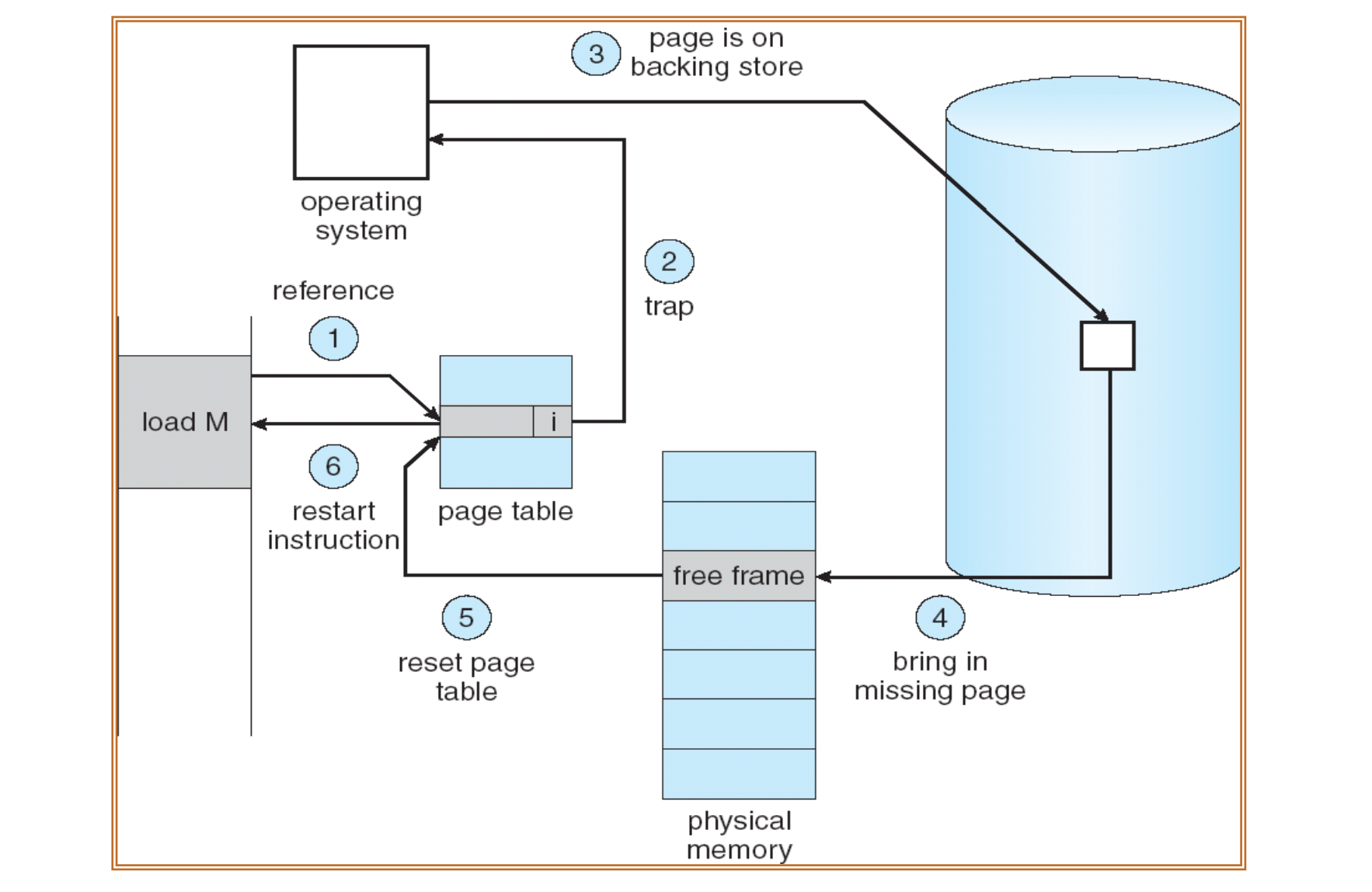 프로그램이 아직 메모리에 없는 페이지에 접근하면, 해당 페이지는 디스크나 백업 저장소에 저장되어 있다.
