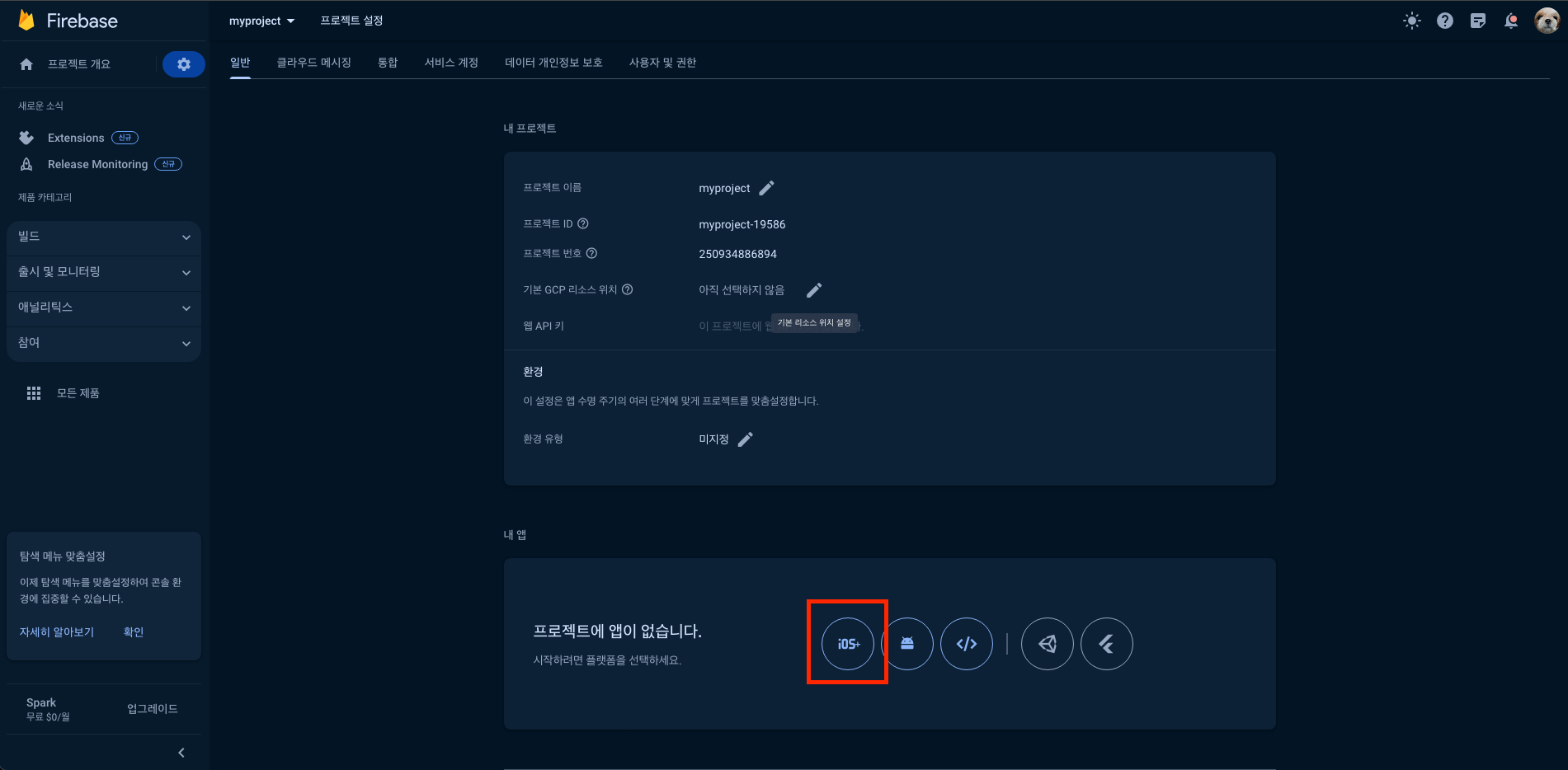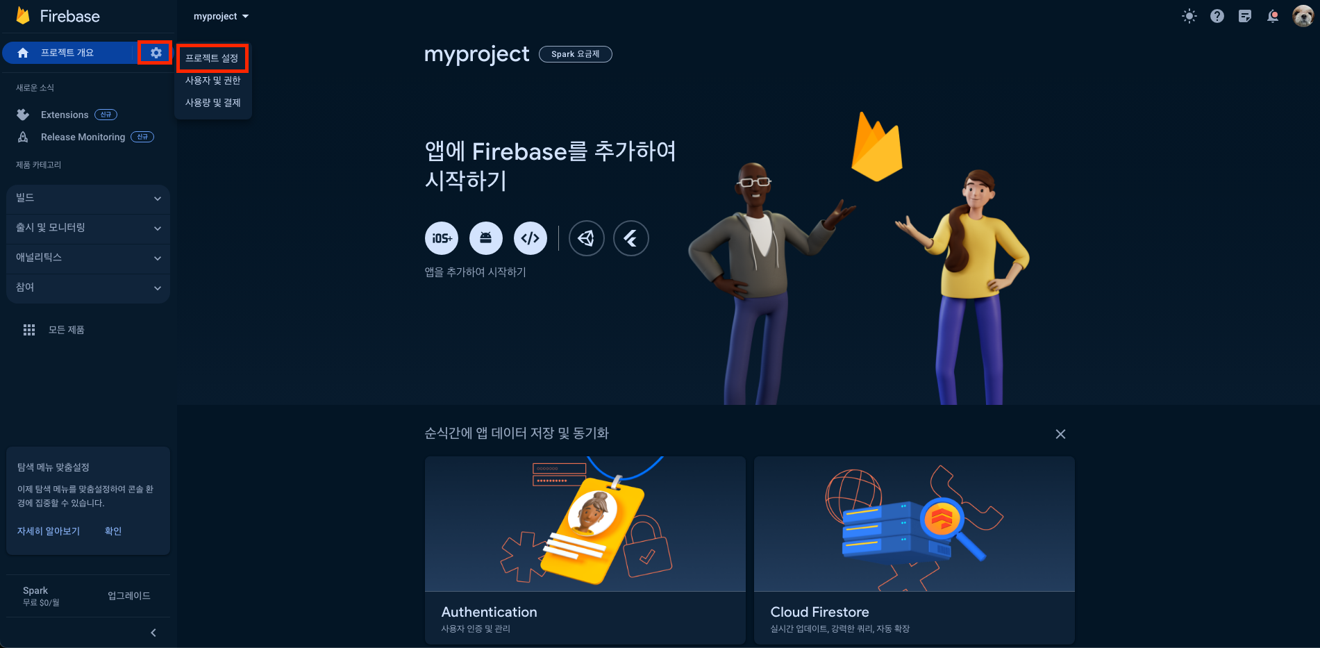 우선 해당 Firebase 프로젝트 설정으로 이동합니다.