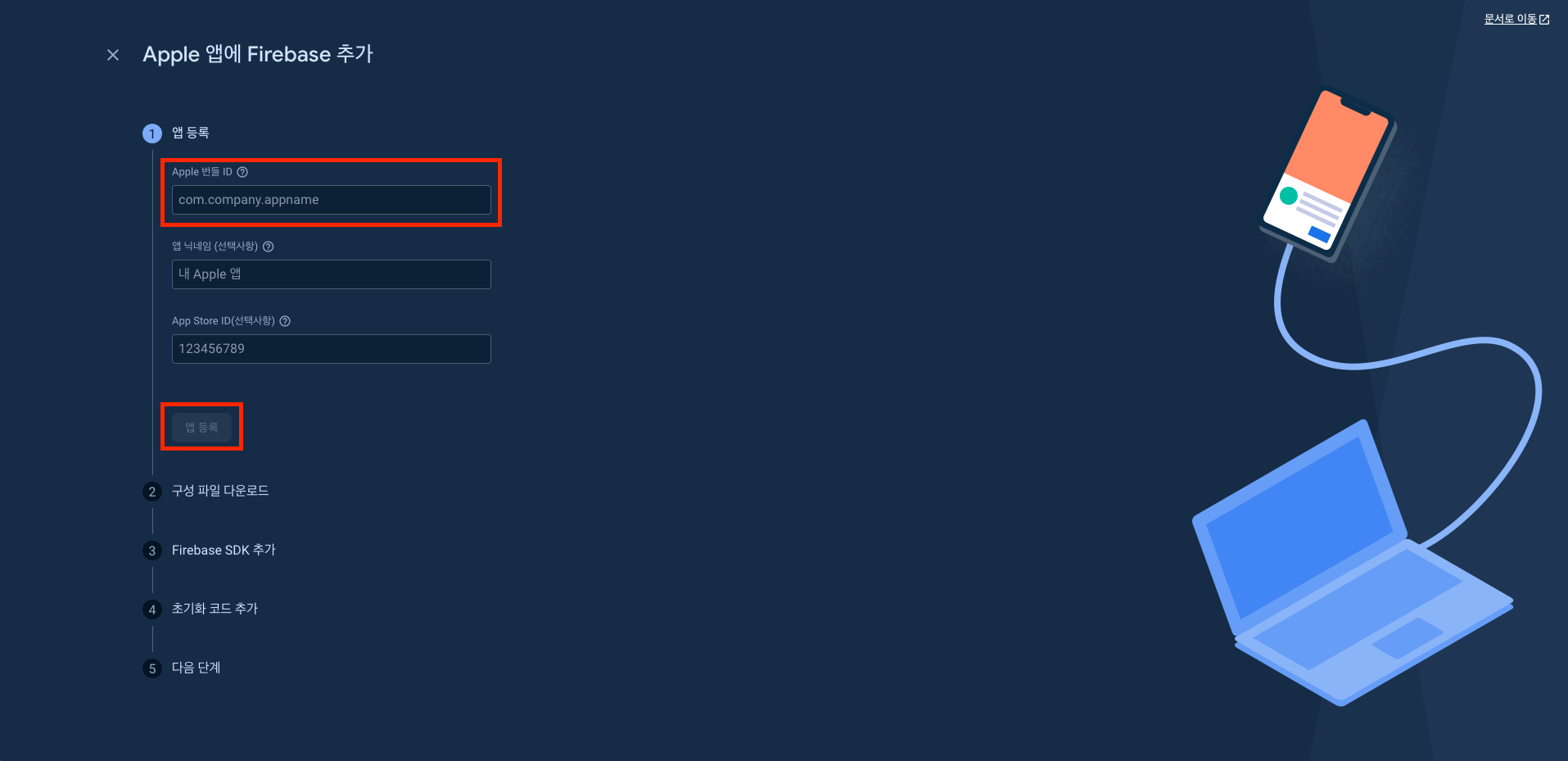 Apple 번들 ID를 입력해주고 앱 등록를 눌러줍니다.