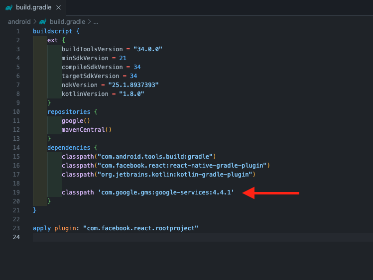 /android/build.gradle 파일에 코드를 추가해줍니다.