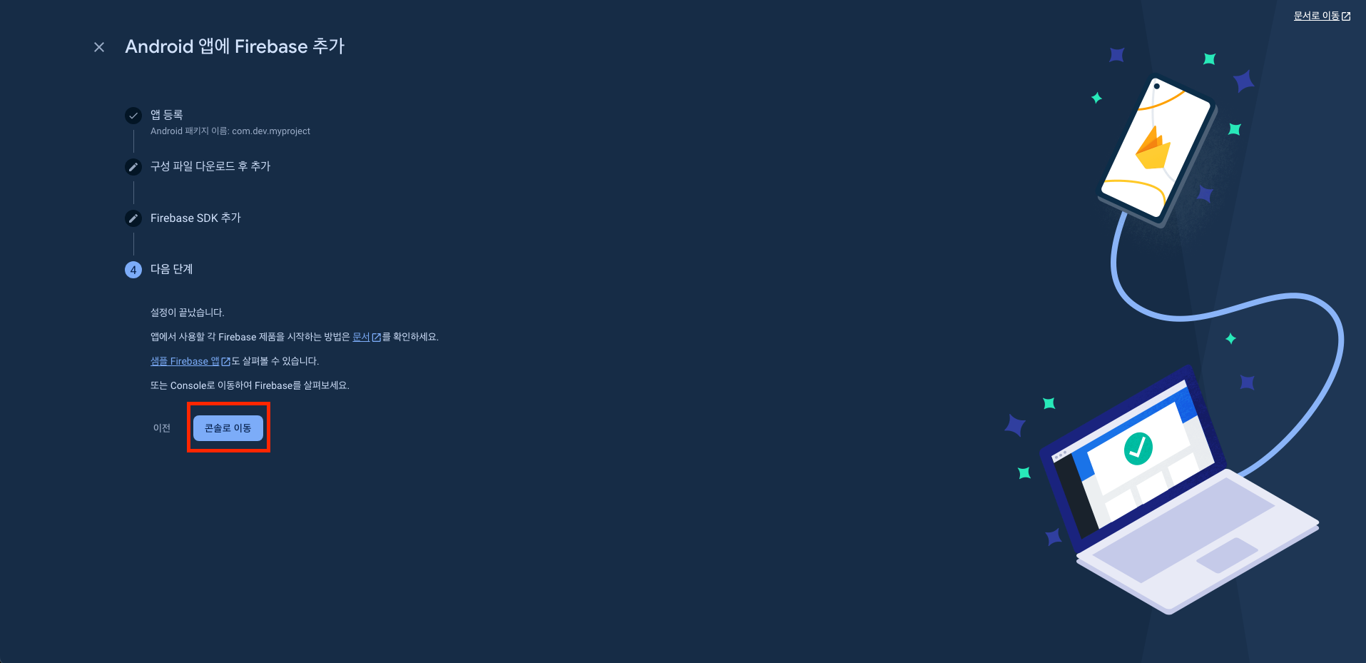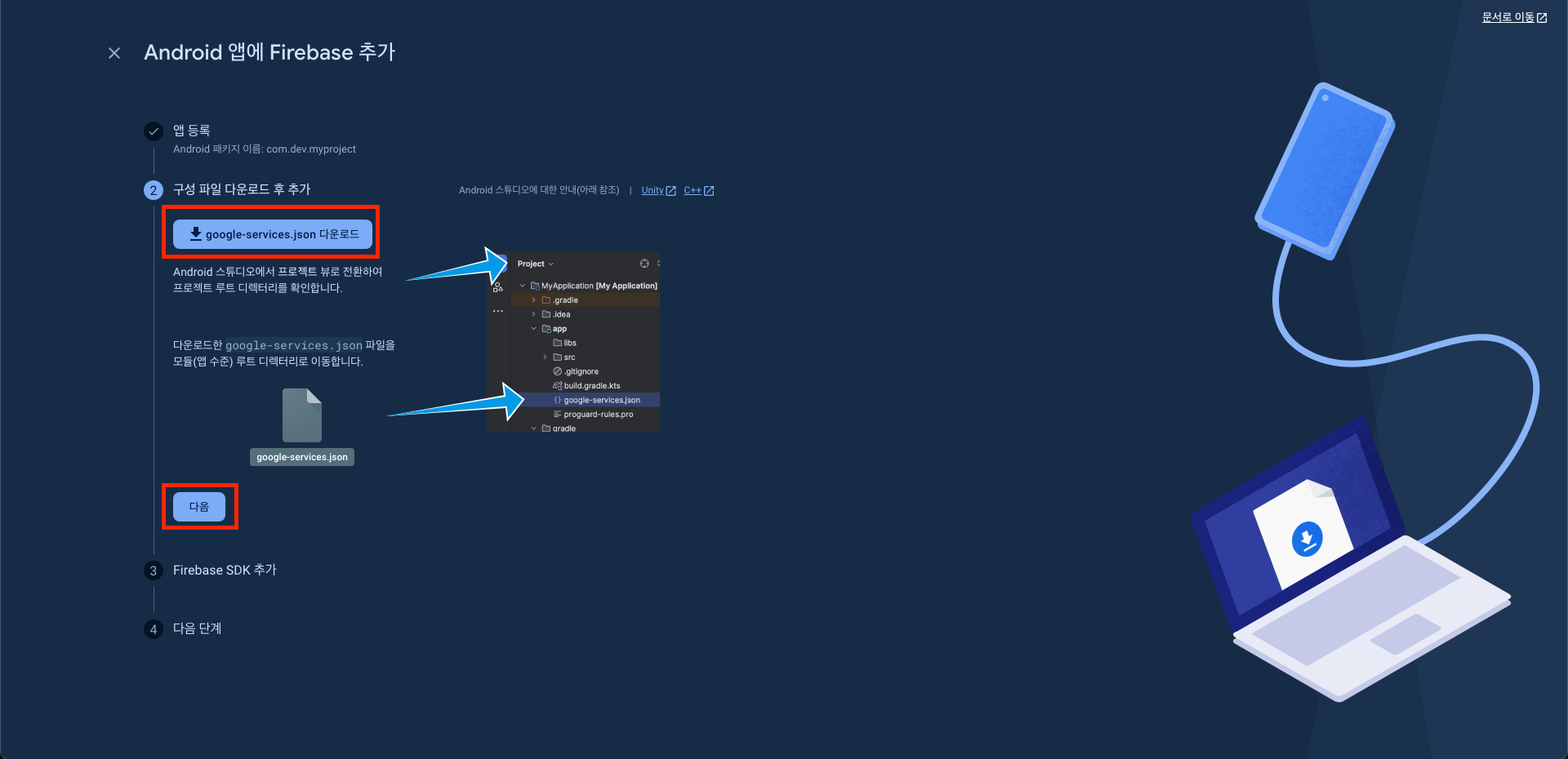 google-services.json 파일을 다운받고 다음을 눌러줍니다.