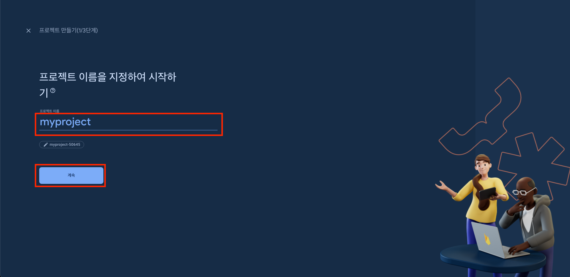 프로젝트명을 입력한 후, 계속을 눌러줍니다.